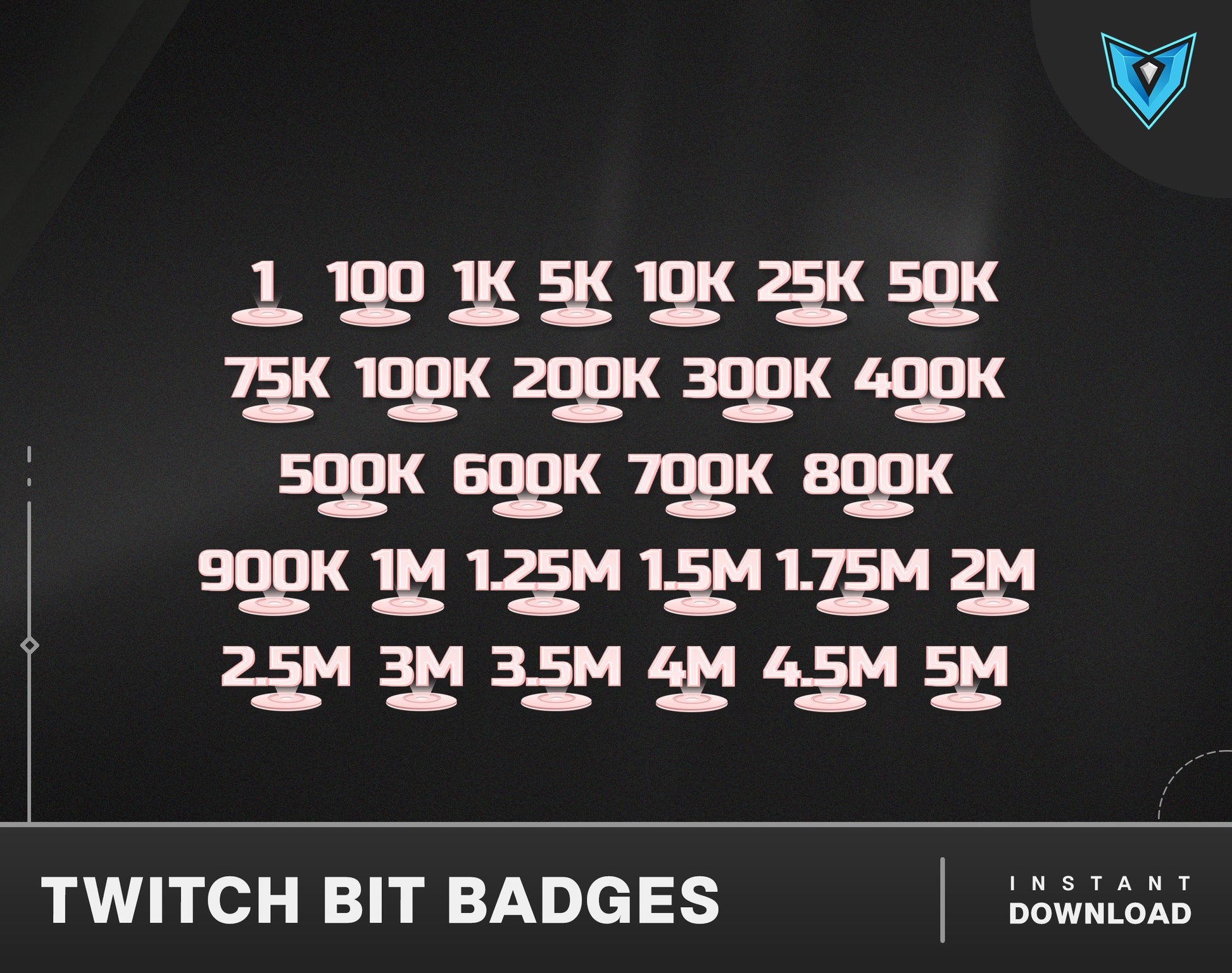 28 Pink Twitch Bit Badges, Pink Bits Twitch Badges, Twitch Bits Badges Numbered, Twitch Sub Badges Pink