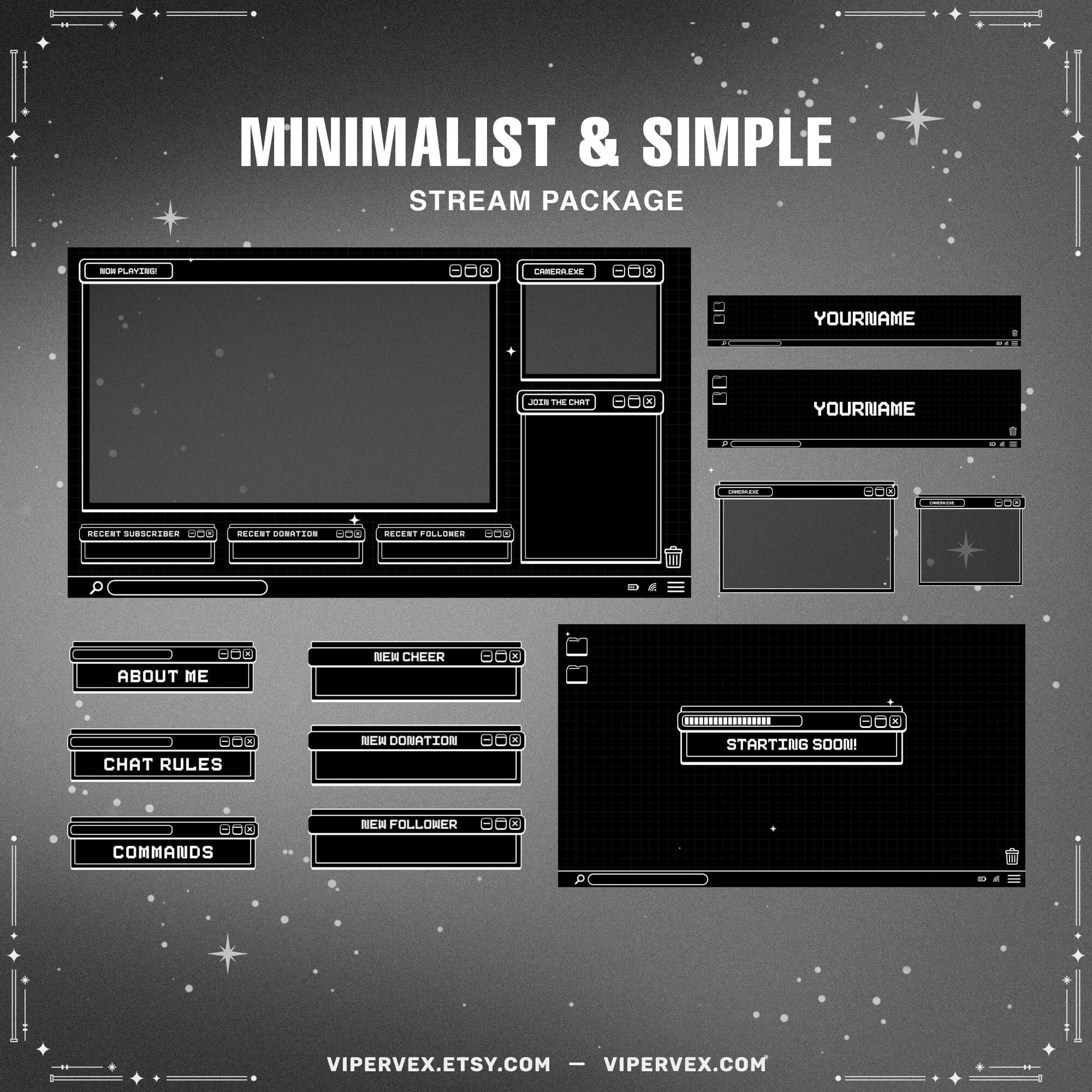 Elevate your Twitch stream with our cosmic Black Pixel Overlay Bundle. 🌌✨ Create an intergalactic journey and captivate your audience! 🚀🪐