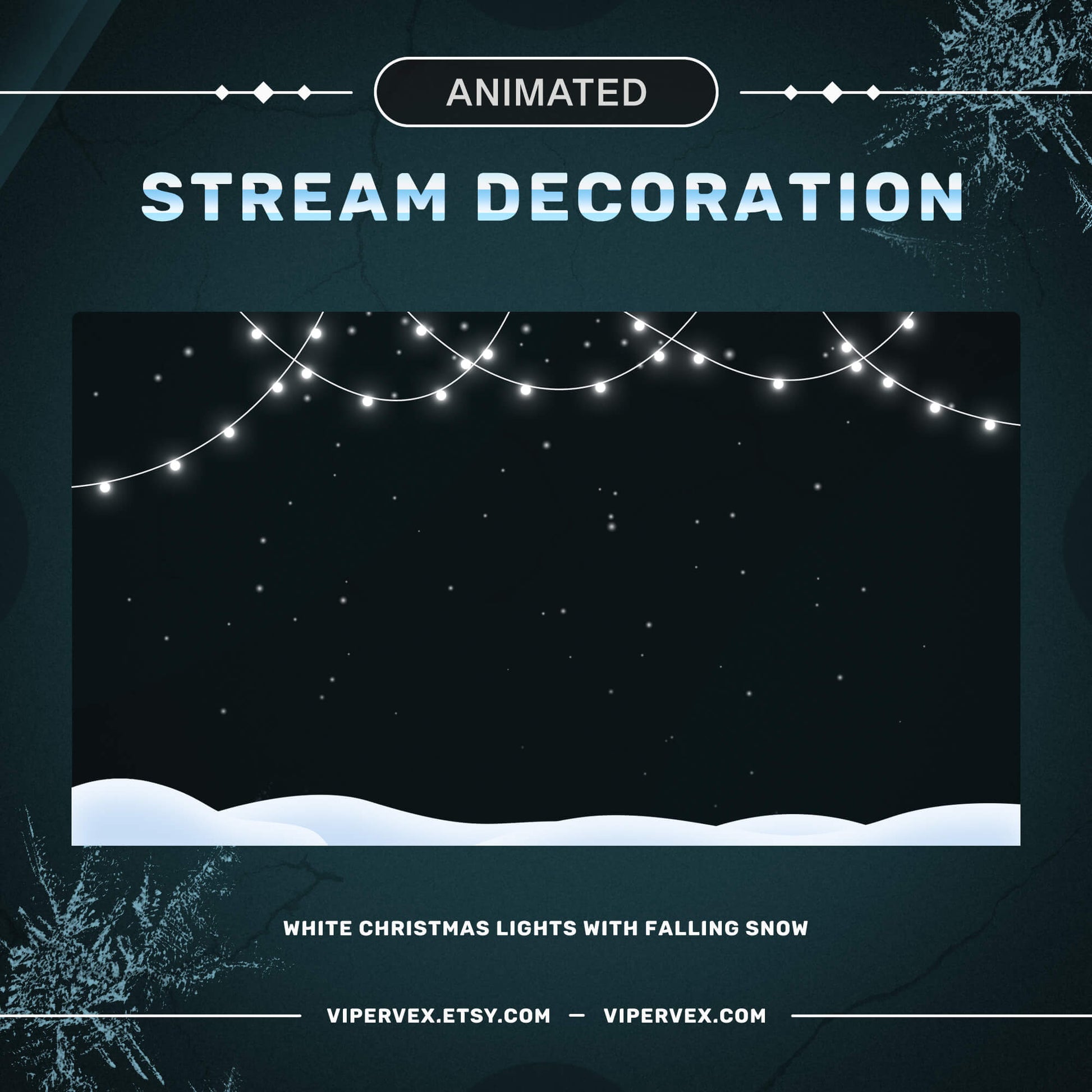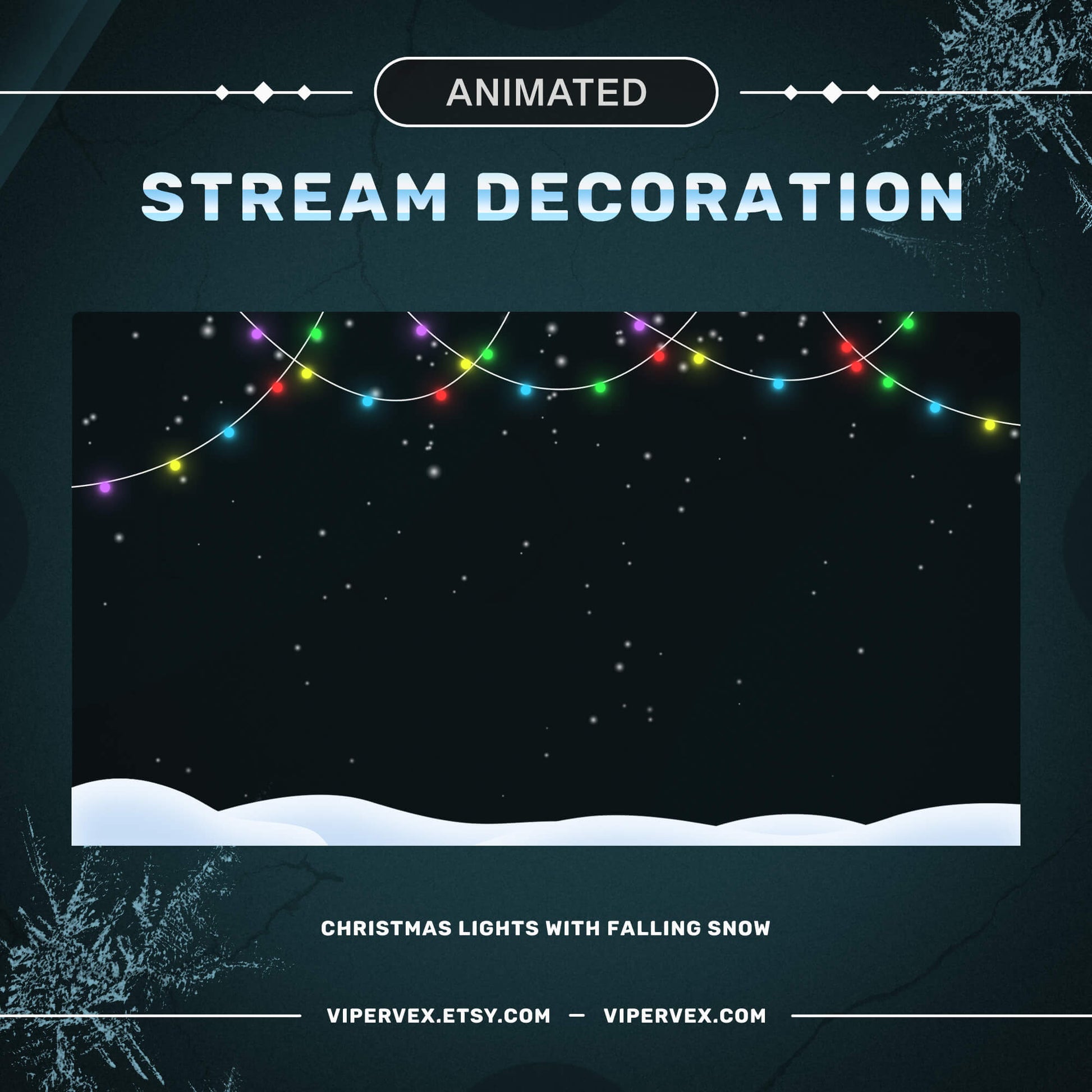 Christmas Lights Stream Decoration With Falling Snow, Winter Twitch Overlay, Cozy Vtuber Screen, Christmas Twitch Overlay